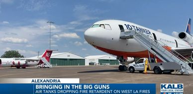 The U.S. Forest Service arranged for aerial firefighters, or air tankers, to arrive at Alexandria International Airport (AEX) on Wednesday. AEX, the former England Airforce base, is operating as a staging site. Its large ramp space allows any size plane to set up shop, which is necessary for large air tankers.
