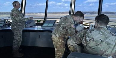In an October 2024 file photo, air traffic controllers from the Louisiana National Guard monitor the skies and taxiways at Hammond Northshore Regional Airport.