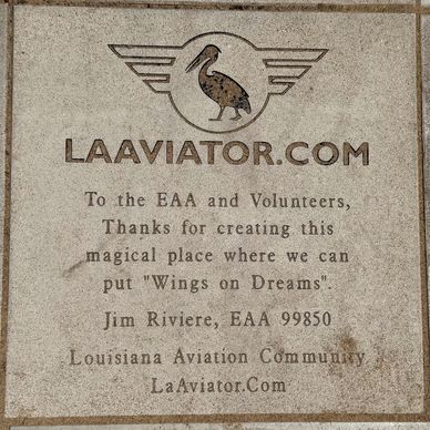 We decided to buy a brick at the Brown Arch in Oshkosh last year. Why? Because I knew how much this special place meant to me and many of you in the Louisiana aviation community. I wanted to thank the EAA and its thousands of volunteers from all of us for creating this spectacular event at this very special place where we can experience “aviation” in all of its many forms.