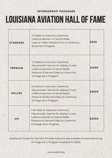 We need all of us to come together to honor our Louisiana aviation heritage. The details on the Sponsorship Packages are shown above.